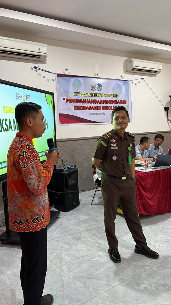 Menurut Dr. Wahid Hidayat, S.Pd.,M.Pd selaku Kepala UPT SMA Negeri 1 Bantaeng bahwa kegiatan jaksa masuk sekolah di SMAN 1 Bantaeng untuk memperkenalkan sekaligus memberikan penyadaran hukum sejak dini di kalangan peserta didik, apalagi tak menutup kemungkinan bahwa ke depan terdapat ada calon jaksa, calon hakim, calon polisi di antara siswa yang ada di SMAN 1 Bantaeng. Sambil memperkenalkan dua alumni SMAN 1 Bantaeng yang saat ini mendamping Kasi Intelijen Kejaksaan Negeri untuk memberikan materi, yaitu Rahmat Wahyudin, A.Md., dan A. Tenri Fitriani Rusdi, S.H. (alumni Smansa tahun 2018). Keduanya tidak hanya sebagai ASN (Aparatur Sipil Negara) tetapi secara khusus dalam kewenangan sebagai APH (Aparat Penegak Hukum).